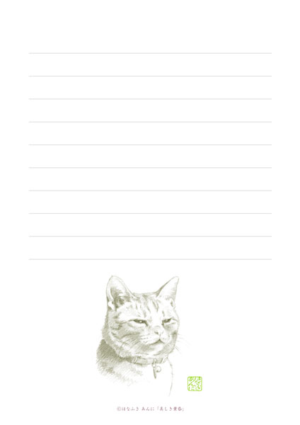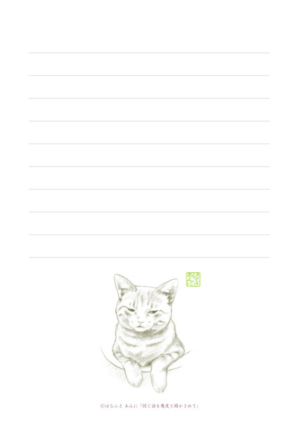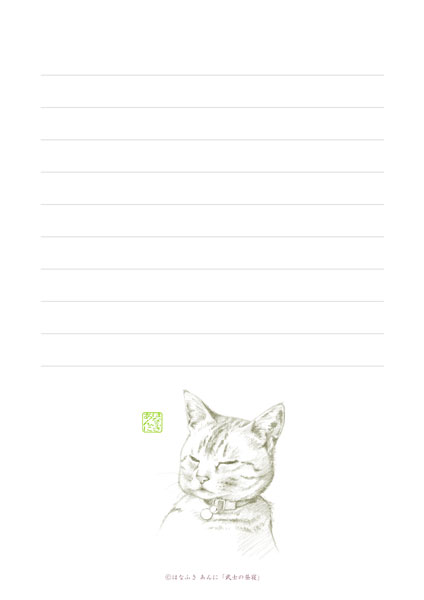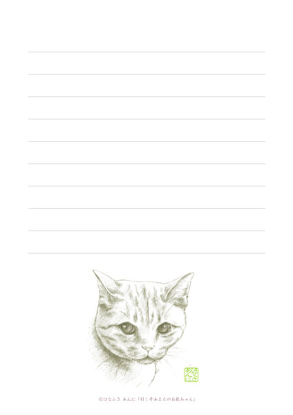 「猫の絵の罫線入り用紙」PDFファイルを開いてください。 |